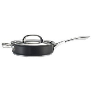- 3-quart covered saut? pan features hard-anodized aluminum body and stainless-steel base with encapsulated aluminum core; nonstick coating and Hi-Low ring design to reduce wear and tear